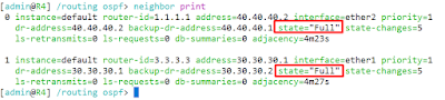 3. Pastikan adjacency setiap router berjalan dengan baik dengan mengecek status state pada neighbor masing masing router di area stub.